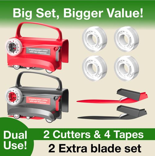 Manufacturer 2 Packs Wrapping Paper Cutter and Tape Dispenser Dual Use for Christmas Holiday Gift Wrap